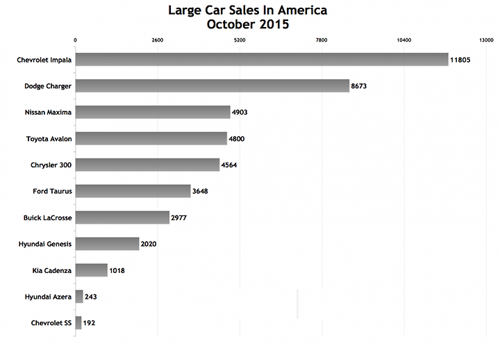 미국 10월달 세단 판매량 보기 (2015)