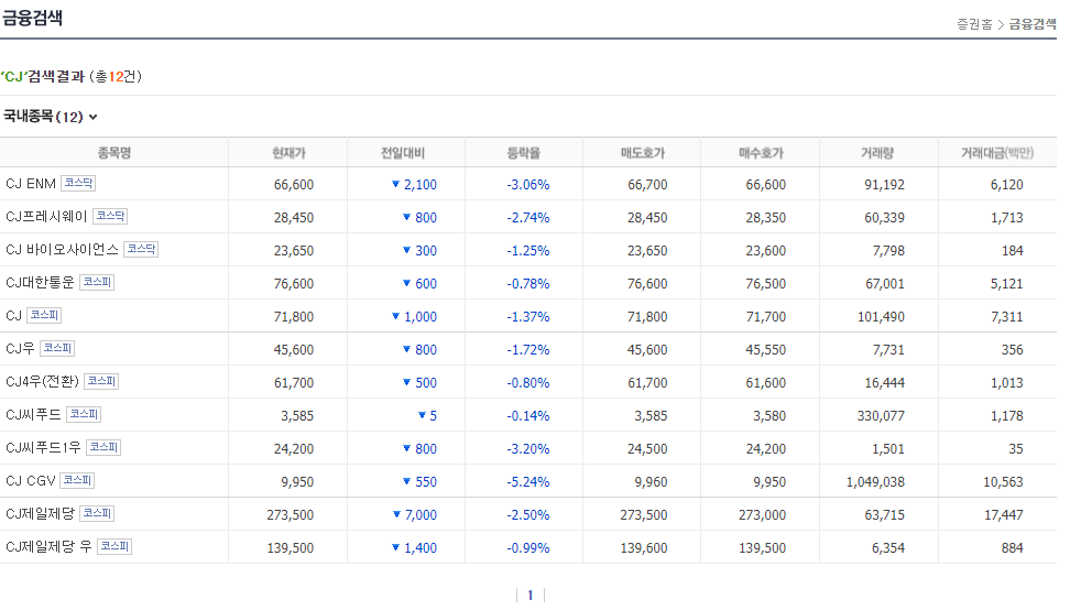 SK증권 "CJ" 목표가 24% 하향…최근 주가급락은 "과도" : 네이버 증권