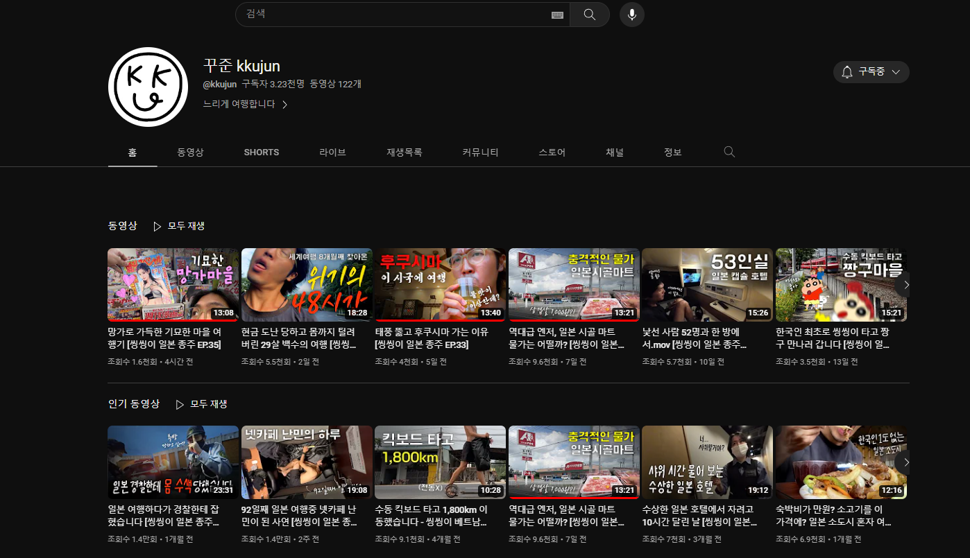 지금은 일본에서 킥보드 여행중이신데 , 일본 관련 영상 보다가 추천 된거 같다.