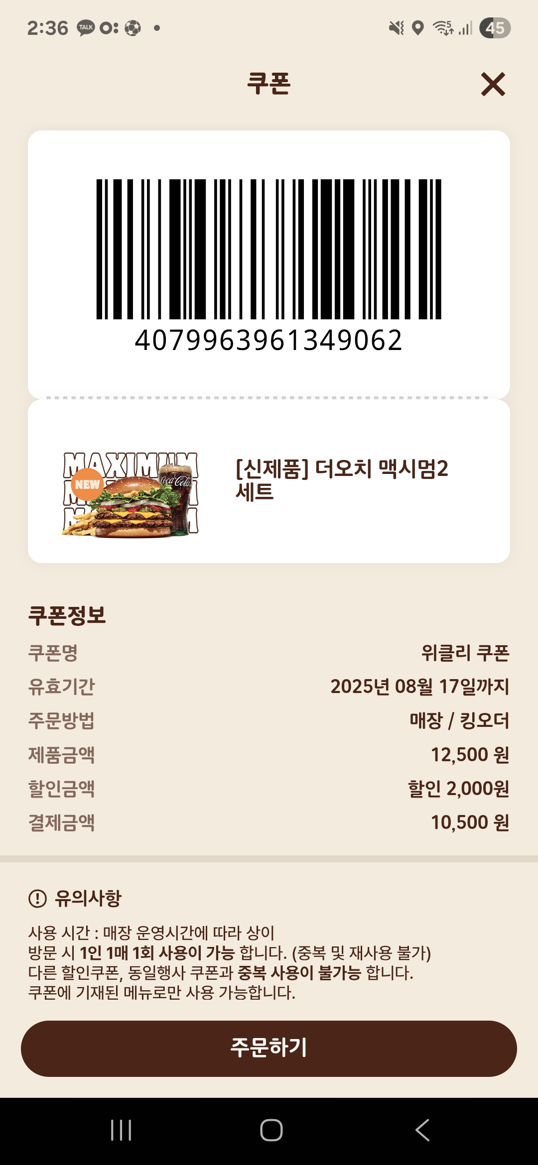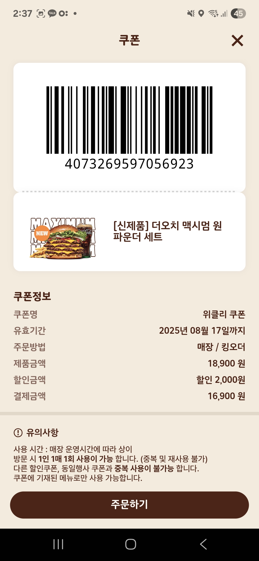 버거킹 맥시멈 쿠폰 3개