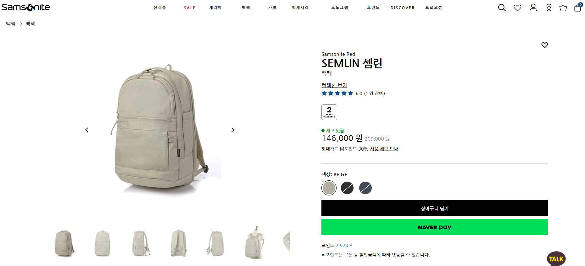 샘소나이트 사이트 구경중에 간만에 마음에 드는 팩백을 발견하였다.
