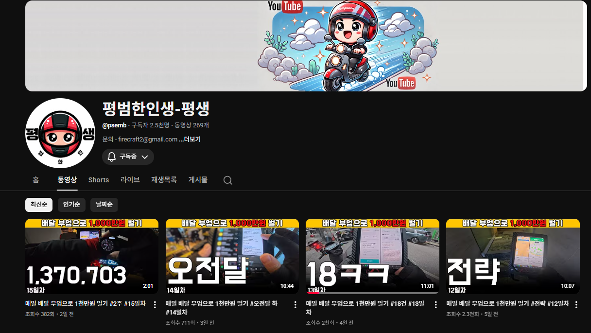 현장감 좋은 배달 유튜버 채널이 있어서 기록용으로 블로그 한다.