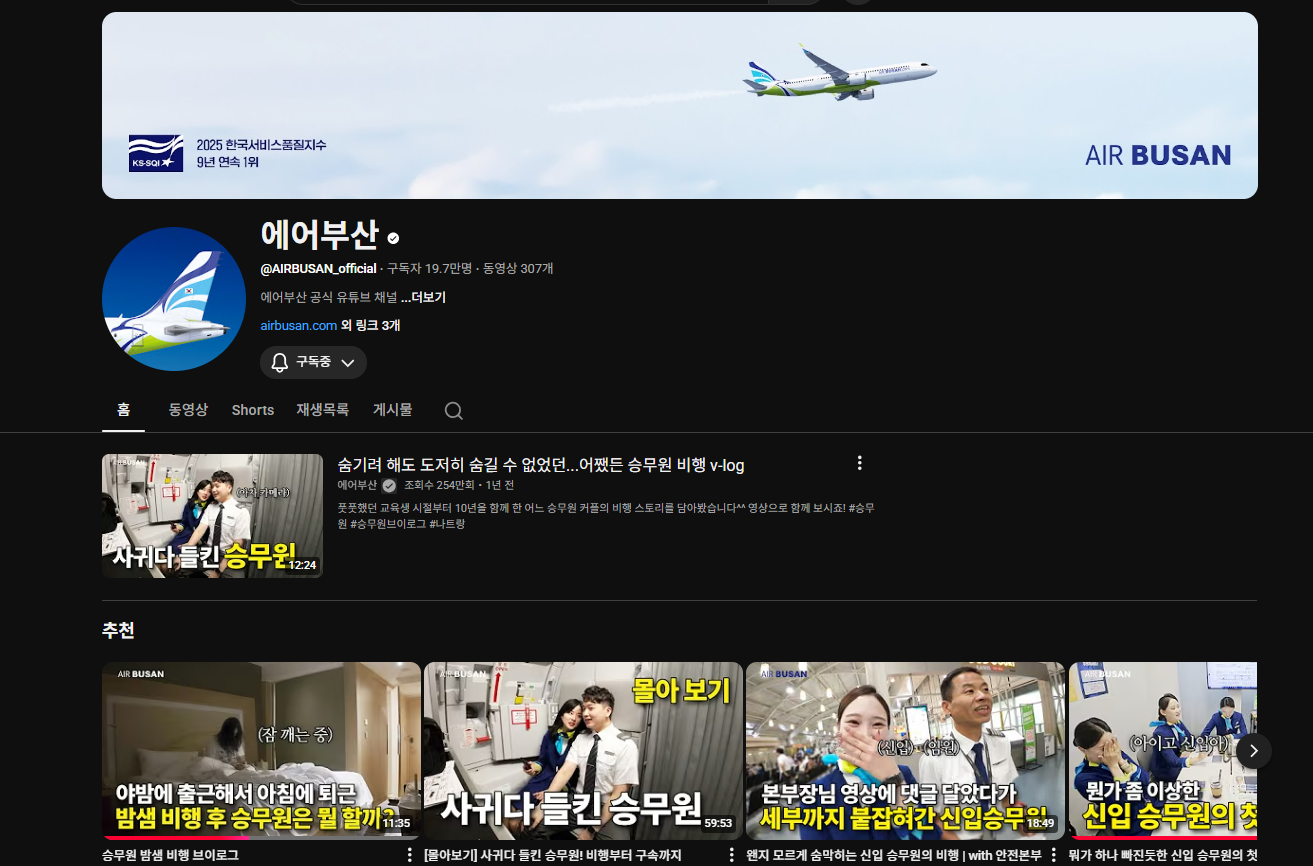 항공사 채널중에서는 에어부산 채널이 가장 활동적인거 같다.