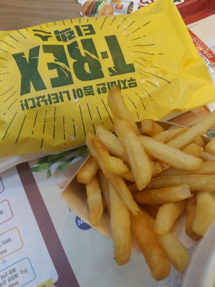 티렉스 패티도 엄청 크고 , 롯데리아는 감자튀김이 맛있죠.