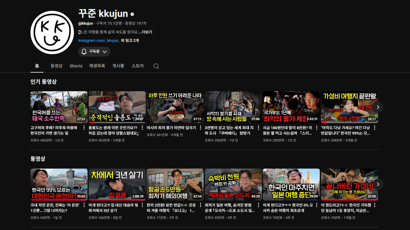 유튜버 채널 : 꾸준 kkujun (여행 채널)