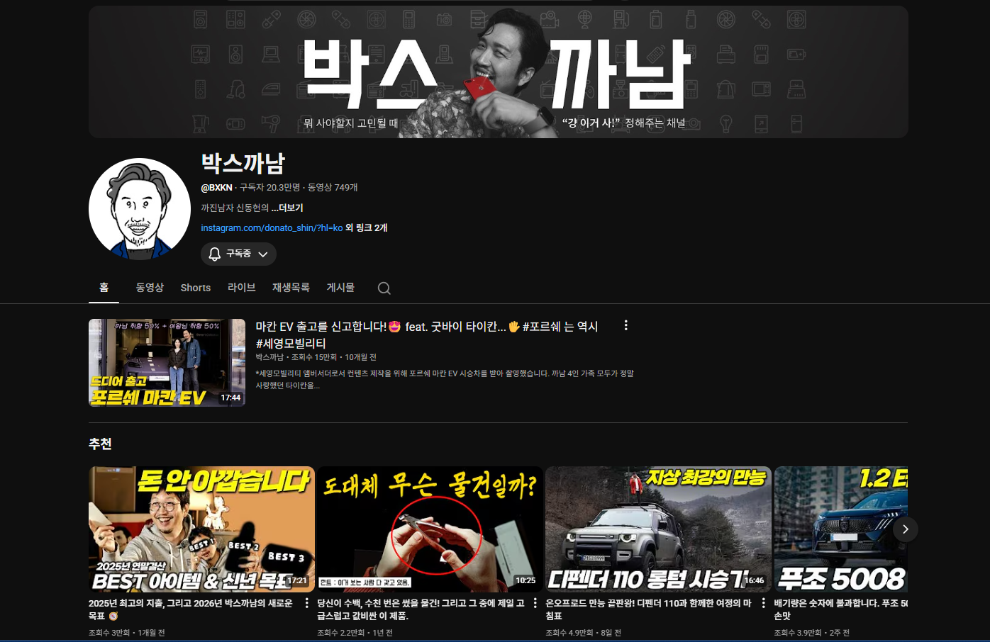 구독자 20만 채널이다.