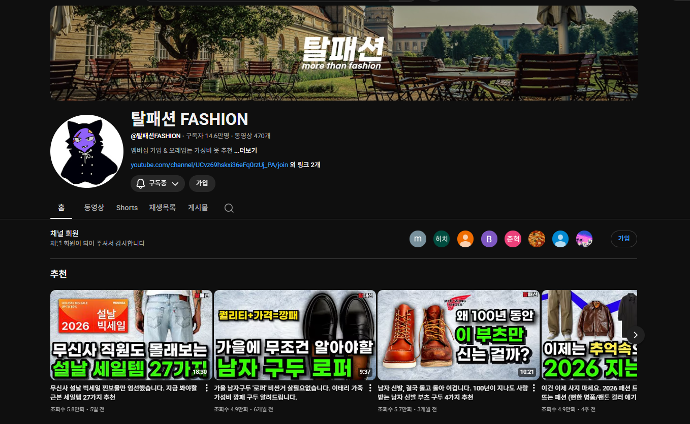 유튜브 채널 : 남성 쁘띠크 채널 (패션)