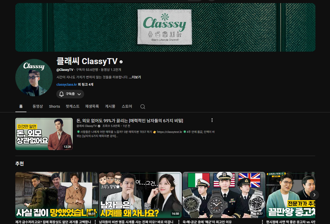 그냥 남성 패션 잡지를 보는거 같은 채널이다.