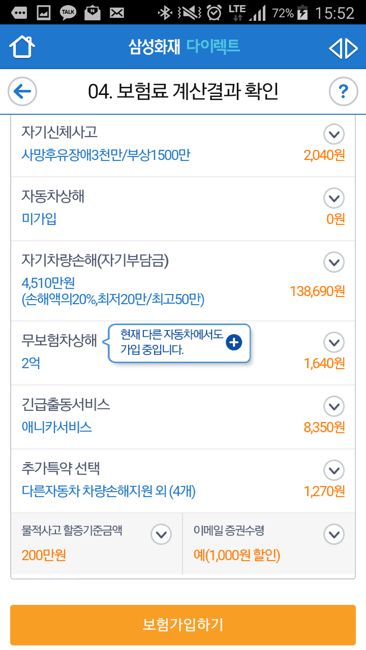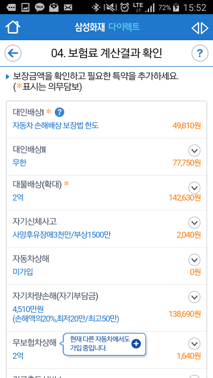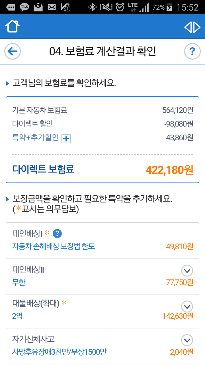 42 만원 가격에서 자손 , 자차 , 에코 정도 선택 하면 조금 + - 될꺼고
