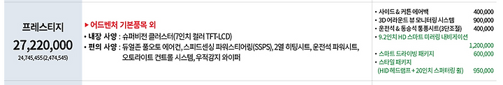오늘은 추가로 프레스티지 , 노블레스 가격을 알아 볼려고 한다.
