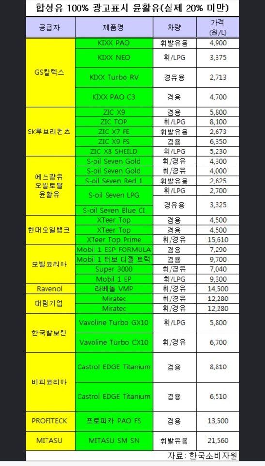 합성유 20% 미만 오일
