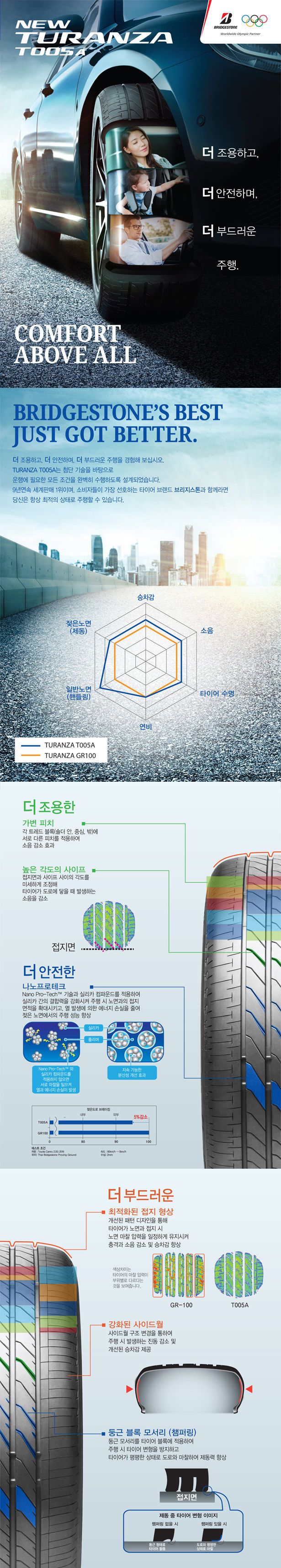 새로 나온 타이어는 컴포트 베이스 인데 언제나 그렇지만 브릿지 스톤 타이어는 상당히 스포츠 성이 있어서