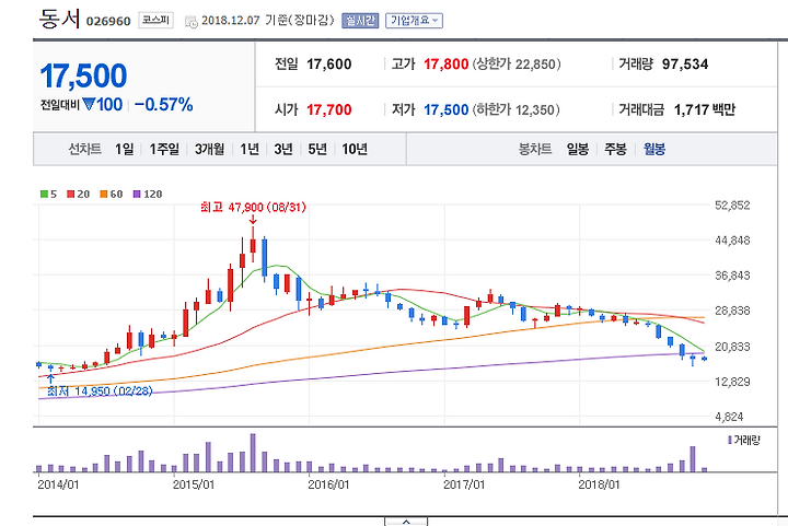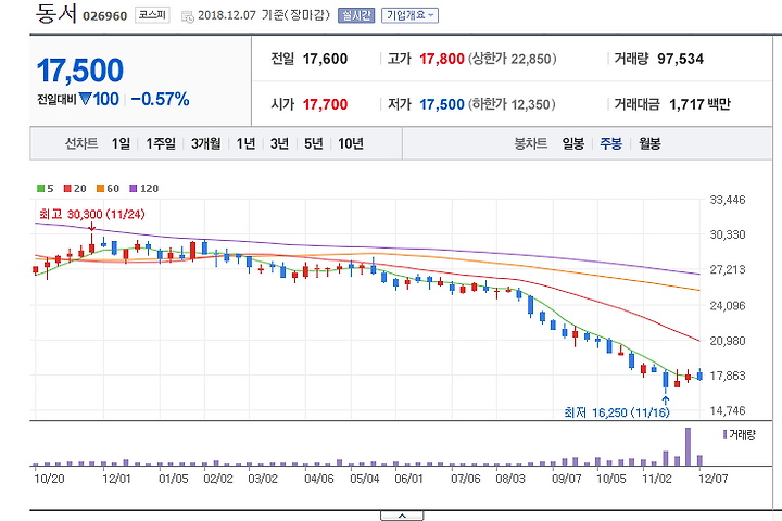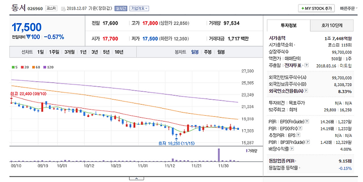 동서 - 주식 가격 많이 내렸네.