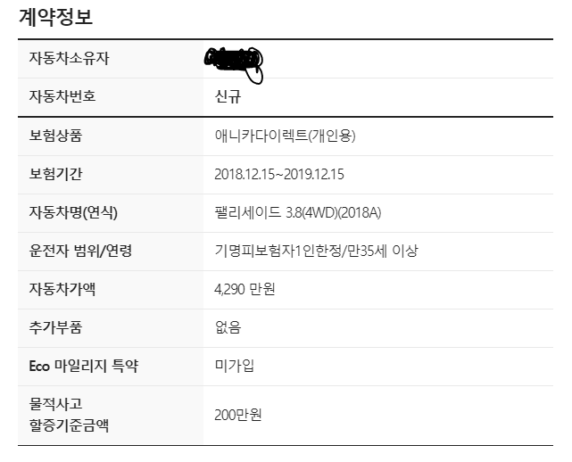 팰리세이드 4륜 3.8 가솔린 모델로 보험료 계산