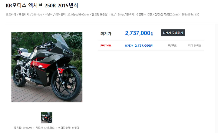 KR모터스 홈페이지에는 엑시브 250R 은 없고 코멧만 있는데.