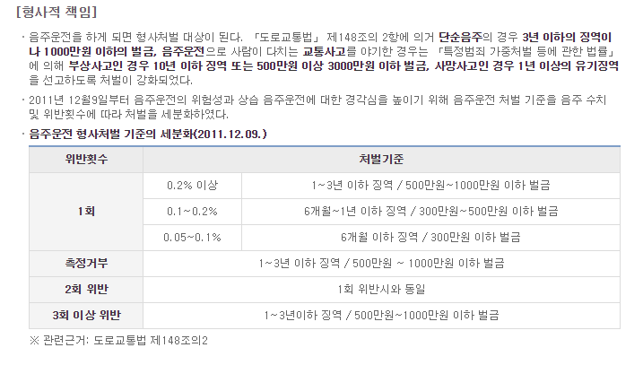 일단은 우선 현행 음주 운전 처벌 기준을 알아 볼려 한다.