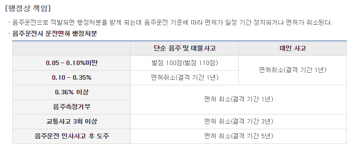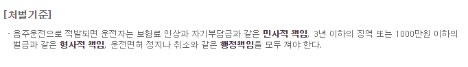 음주 운전 처벌 기준