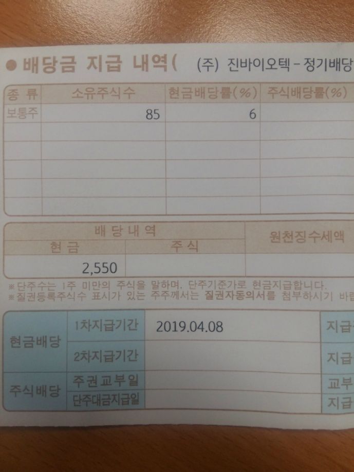 진바이오텍 배당 받